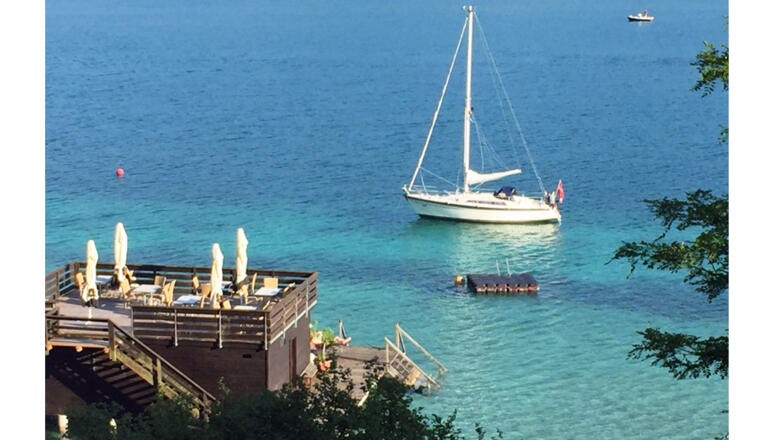 Von Ihrem Hotelzimmer aus erreichen Sie unser einzigartiges Naturrefugium mit Bootshaus, Beach-Bar, Badeplatz und direktem Seezugang bequem mit einem Außenlift.