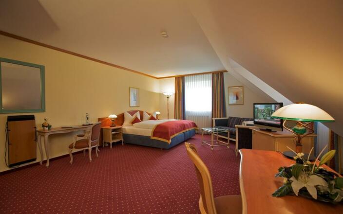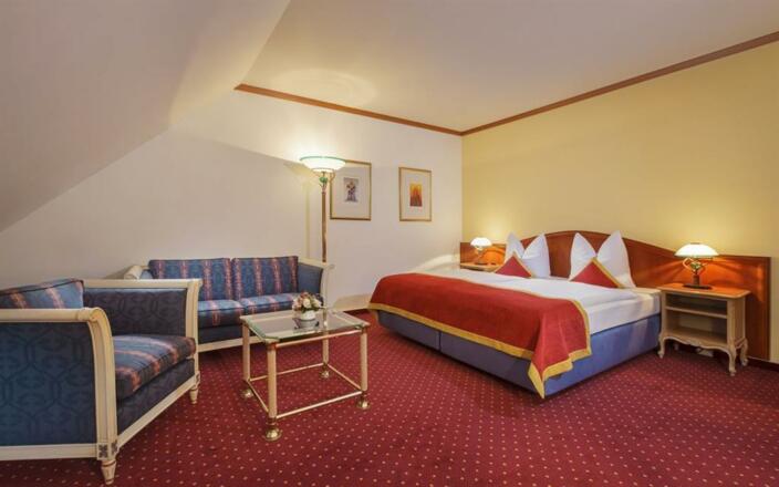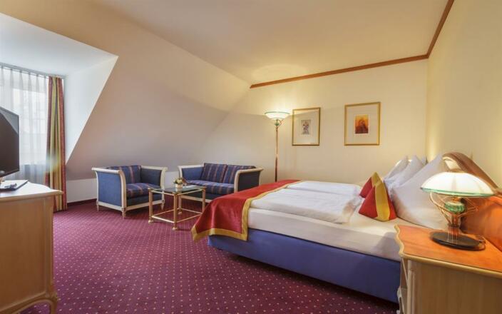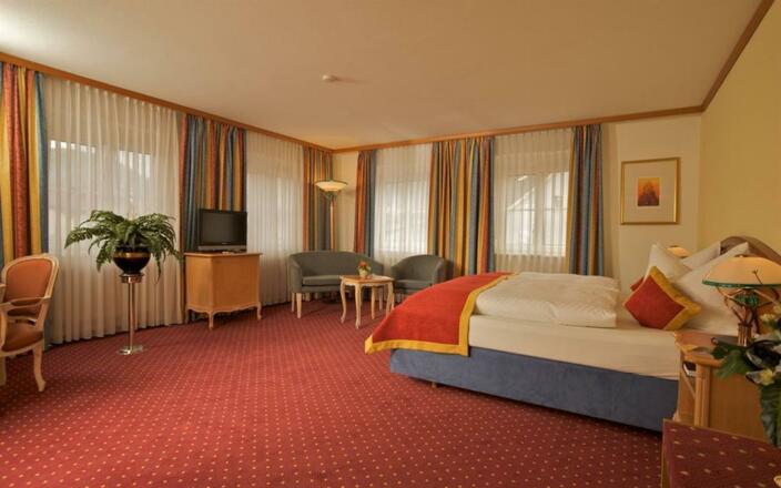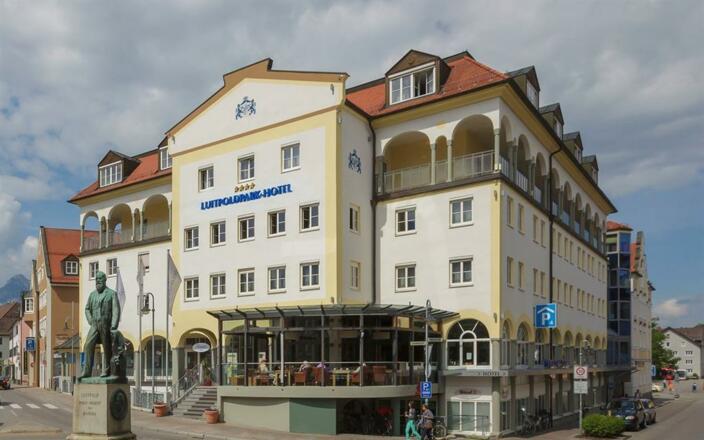 Umgeben von Allgäuer Alpen und Seen liegt im malerischen Königswinkel die Stadt Füssen. Das 4* Hotel Luitpoldpark befindet sich mitten im Herzen der Stadt, direkt am angrenzenden Stadtpark. Alle 131 Komfortzimmer und Suiten verfügen über eine hochwertige Ausstattung. Das Hotel ist für Tagungen, Seminare, Gruppen und Familien geeignet. Ein Haus auch für kulinarische Genießer. Der großen Fitness- und Wellness Park mit Saunen, Dampfkabine und einem Athletikcenter runden das grosse Angebot ab.SonstigesFreie Nutzung des großen Fitness- und Wellness Park. Tiefgaragengebühr 8,00 € f. 24. Std. Für Haustiere berechnen wir 10,00 € pro Tag (ohne Futter). Der Zutritt zu den Restaurants ist mit Tieren nicht erlaubt. W-lan im Haus vorhanden.