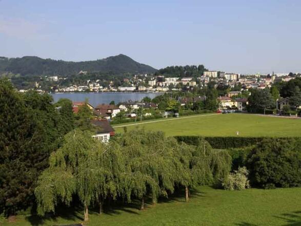 Hotel in einer reizvollen landschaftlichen Umgebung in der Nähe des Traunsees. In herrlicher Lage am Fuß des Grünbergs mit Blick auf See, Gebirge und Stadt. Garten mit Liegewiese. Sehr ruhige Lage. 150 m vom See entfernt; Seminarmöglichkeit, Hallenbad, Sauna, Fitnessraum, Spielraum mit Billard, Fußball, Kegelbahn; Bar, Kreditkarten