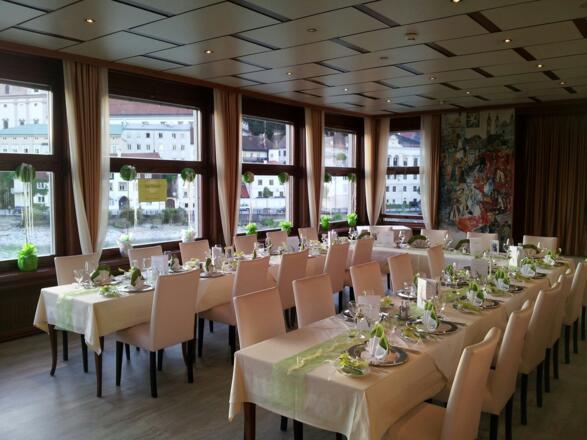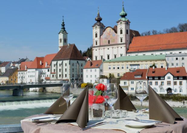 Die „Panoramarestaurants“ mit einzigartigem Ausblick auf das Steyrer Altstadtensemble und den Zusammenfluss sowie unsere, aus 100-jährigem Holz handgeschnitzte „Flößerstube“, die schönste Bauernstube OÖ, bilden einen ansprechenden Rahmen für: