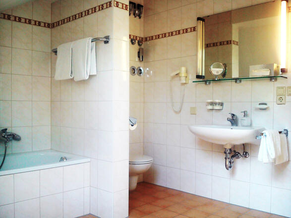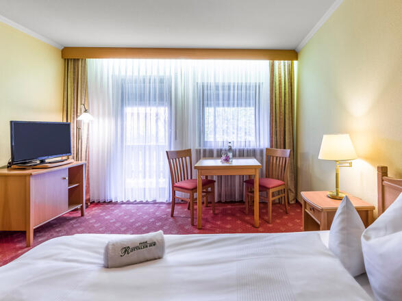 Direkt gegenüber der Rottal Terme Zimmer ausgestattet mit Telefon, Flachbild-TV, Safe, Fön, Kühlschrank, Kaffeemaschine, teilw. Kleinküche sowie Balkon/Terrasse, flacher Einstieg bei den Duschen zwei Aufzüge Überbreite Betten (120 cm) im Einzelzimmer Spätabreise auf Anfrage bis 12.00 Uhr gratis möglich Alle Zimmer sind Nichtraucherzimmer Zwei Restaurants mit Terrasse, Hotelbar/Lounge Frühstücksbuffet von 7.30 bis 10.30 Uhr Kaffeenachmittag von 14.00 bis 15.30 Uhr Praxis für physikalische Therapie, Tel.: 08563 28215 Internet-PC in der Hotelhalle gratis WLAN im ganzen Hotel gratis verfügbar Verleih von Golfcarts (gegen Gebühr) mit Straßenzulassung, Caddiebox gratis Bis zu 30 % Greenfee-Ermäßigung auf 14 herrlichen Golfplätzen in der Golfregion Donau-Inn Transfer bei An- und Abreise vom/zum Bahnhof Bad Birnbach gratis Ideal für Gruppenreisen aller Art, z. B. Wandern, Radfahren, Golfer, Yoga, Vereine u. v. m., unterbreiten wir Ihnen gerne ein individuelles Angebot mit persönlicher Betreuung. Unser Tipp für die Rottal Terme: Vergünstigte Thermeneintritte an der Hotelrezeption Als Hotelgast baden Sie je Eintritt 1 Std. länger gratis Ihre Krankenkasse bezuschusst: Aqua-Fit-Prävention und die Kurzkur (Mehr Informationen in der Rottal Terme unter Tel. 08563/2900)