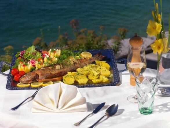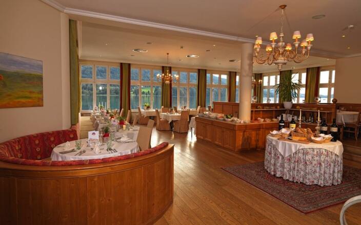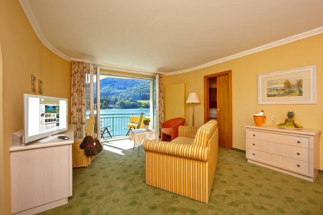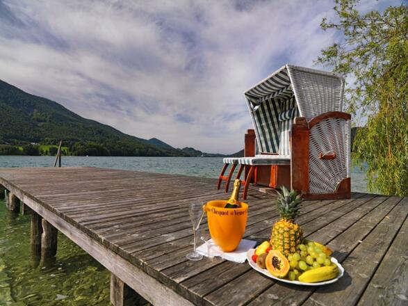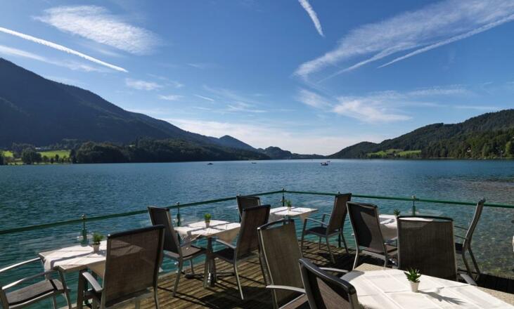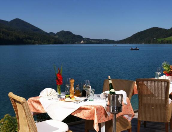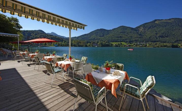Hotel Seerose Erleben Sie österreichische Gastlichkeit an einem der schönsten Plätze des Salzkammergutes, nur 20 km von der Festspielstadt Salzburg und 30 km vom Kaiser - und Operettenstädtchen Bad Ischl entfernt. Die "Seerose" erwartet Sie in bester Lage direkt am Ufer des glasklaren Fuschlsees und 4-Sterne-Komfort verwöhnt nunmehr die Gäste in den geräumigen Zimmern, die alle mit Balkon, teilweise über dem See ausgestattet sind. Zum wohligen Entspannen steht ein Sauna-Wellnessbereich, unter anderem mit Panorama-Hallenbad samt direktem Seezugang bereit. Herrliche Fischgerichte ( Tipp: Lachsforelle aus dem Fuschlsee für Zwei ) und regionale Küche runden das kulinarische Angebot ab.