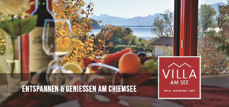 Herzlich willkommen im ***Superior Hotel - Restaurant "Villa am See" in Prien am Chiemsee! Wir freuen uns, wenn wir Sie demnächst bei uns begrüßen dürfen. Es erwartet Sie ein familiär geführtes, gepflegtes Haus in moderner Ausstattung mit seinem eigenen Ambiente. Unser Hotel liegt in Prien, nur wenige Schritte vom Ufer des Chiemsees entfernt. In 5 Gehminuten erreichen Sie die Schiffsablegestellen der Chiemsee-Schifffahrt, den Kletterwald, Minigolf, das Prienavera Erlebnisbad, Bootsverleih, Bushaltestelle oder die Bockerlbahn und vieles mehr. Nehmen Sie Platz in unserem neu gestalteten Restaurant. Hier verwöhnen wir Sie mit bayerischen Schmankerln aus frischen Zutaten der Region aber auch mit feinen leichten Kreationen in fantasievollen Kombinationen. Auf unserer großen Sonnenterrasse genießen Sie am Nachmittag hausgemachte Kuchen und Torten. Im Winter wärmen Sie sich am offenen Kamin. Sky Sportsbar im Restaurant. Die einzigartige Farbkomposition bestimmt das Erscheinungsbild unseres Hauses. Die Zimmer sind mit Dusche/WC, 40" Flat-TV, Minibar, Tresor, Telefon und schnellem Internetanschluss ausgestattet. Die Zimmer zur Seeseite bieten einen herrlichen Blick auf das "Bayerische Meer". Was gibt es Schöneres, als am See den Abend mit goldenem Sonnenuntergang zu erleben? Unsere Aufpreise: Zustellbett je nach Saison pro Tag ab 10 EUR Garage pro Tag 10 EUR Hund ohne Futter pro Tag ab 10 EUR Halbpension, Aufpreis pro Person pro Tag ab 15 EUR Vollpension, Aufpreis pro Person pro Tag ab 27 EUR Zimmerservice 3 EUR Die Zimmerpreise können variieren, je nach verfügbarer Kategorie.