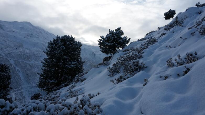 Von der Hütte in Richtung Geiseljoch - kurz vorm Nafinger See dem kleinen Abzweig nach rechts folgen und über den Bach. Der Pfadspur durch die Latschen folgen - später kann man je nach Verhältnissen weiter dem markierten Weg folgen (soweit erkennbar), oder bei guten Verhältnissen in direkter Linie zum Gipfelkreuz aufsteigen. Zurück zur Hütte - und dann hat man zahlreiche Abstiegsvarianten nach Innerst.