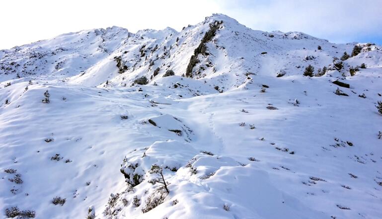 Eigentlich nur ein Gipfelchen, sollte doch der Aufstieg nicht unterschätzt werden - gerade nach Neuschneefällen. Auch die Steilheit ist nicht ohne