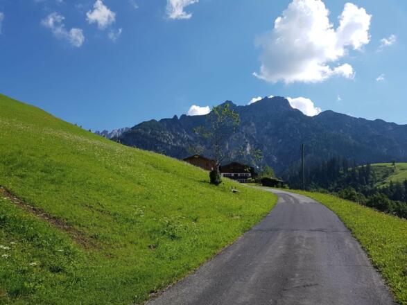 Von Lofer aus geht die E-Bike-Tour über Scheffsnoth entlang der Saalach nach Strohwolln. Anschließend biegt Ihr in eine 180°-Kehre, wo die erste Steigung beginnt. Die Straße führt Euch hinauf ins Wildental. Nach einem kurzen Flachstück geht es wieder bergauf, vorbei an ein paar Bauernhöfen weiter Richtung Hundalm, den höchsten Punkt der Tour. Die Abfahrt führt vorbei an der Auerweißbachalm und der Auer Wiesn zurück nach Scheffsnoth und weiter zum Start der Tour im Zentrum von Lofer.