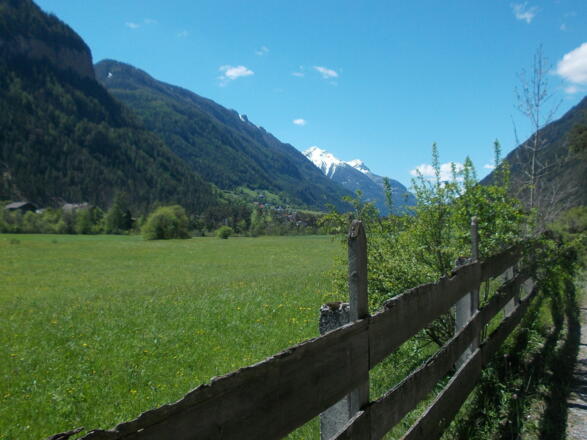 Der Weg führt weiter entlang des Inns nach Ried, wo man die Talseite erneut wechselt.