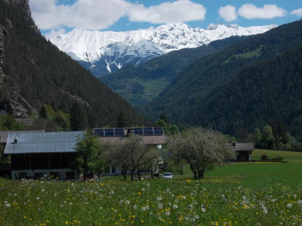 Diese Wanderung verläuft durchgehend im Talboden des Oberinntals zwischen Tösens und Ried. Sie folgt einem Stück der uralten Bewegungsachse über den Reschenpass, die zur Römerzeit als "Via Claudia Augusta" ausgebaut wurde. Von ihr hat die Römerbrücke in Tösens ihren Namen, obwohl das Gemäuer wohl aus dem Mittelalter stammt. Direkt an der ehemaligen Römerstraße liegt der Aster-Hof von Christian Sturm. Hier wird besonderer Wert auf nachhaltige, geschlossene Wirtschaftskreisläufe am Hof gelegt. Das hier auf den von Rössern bearbeiteten Äckern wachsende Korn wird in der eigenen Mühle mit der Kraft des Wassers gemahlen und im hauseigenen Holz-Backofen zu Brot verarbeitet.
