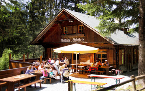 Gemütliche kleine Jausenstation am Fuße des Wasserfalls