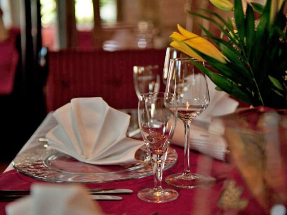 im Restaurant mit 40 Sitzplätzen oder im romantischen Gastgarten und auch bei Caterings vom Candle-Light-Dinner für 2 bis zu Groß-Events von über 1.000 Gästen!