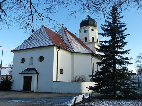 Erste Erwähnung der ursprünglichen Kirche in einem Ablassbrief aus dem Jahr 1438. Trotz mehrmaliger Umbauten und Erweiterungen wurde die Kirche 1928 bis auf den Chorturm abgerissen. Fertigstellung des Neubaus 1929 unter Einbeziehung des ursprünglichen Turms. welcher bereits in der Barockzeit mit der charakteristischer Zwiebelhaube versehen wurde. Die Innenausstattung ist größtenteils barock und stammt teilweise noch aus der ursprünglichen Kirche. (Hochaltar: Gottesmutter Maria; Seitenaltäre: Herz Jesu und St. Willibald; 14 Kreuzwegstationen von 1888)