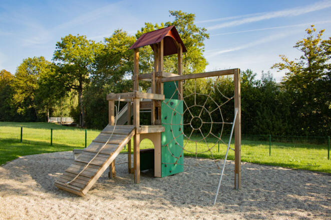 Der große Spielplatz mit vielen verschiedenen Spielmöglichkeiten, liegt direkt am Sportplatz und hat für jeden etwas zu bieten!Kletterwand, Balanciertau und ein Drehkarussell geben schonmal einen spielerischen Vorgeschmack.Für den Hunger zwischendurch bieten sich Tisch und Bänke als Rastplatz an oder sie lassen es sich im naheliegenden Gasthaus Kirschner schmecken!