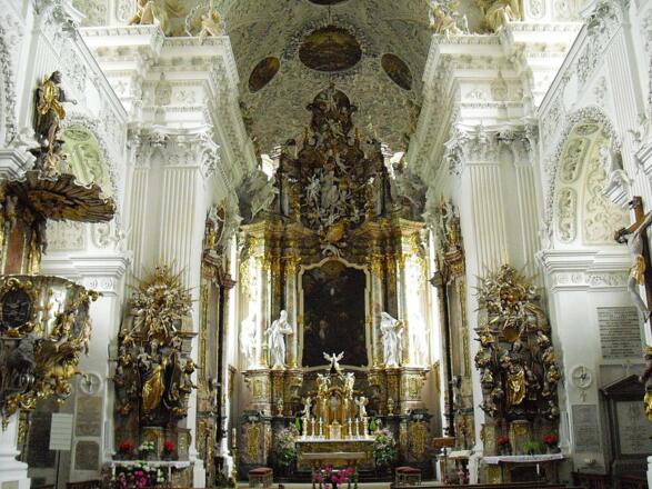 Die Klosterkirche ist aufgrund der erhobenen Lage und ihrem markanten Turmpaar weithin sichtbar und verleiht der Baugruppe monumentale Wirkung. Im Inneren der Kirche beeindrucken die üppige Barock-Ausstattung und insbesondere die reichen Stuckaturen.