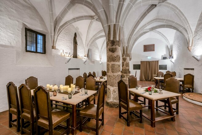 Würdiger Rahmen: der Gotische Keller, die gemütliche Gaststube und der Kastanienhof laden zur gemütlichen Einkehr im Kloster Seeon ein. Gaumenfreuden in historischer Kulisse.
