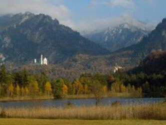 Entlang der Mühlberger Ach geht es über die B 17 und zum Areal der Tegelbergbahn. Hier lohnt ein kleiner Umweg zum Römerbad und weiteren Ausgrabungen bei der Talstation, an der es auch einen Kiosk gibt. Die weißen Zinnen von Neuschwanstein rücken näher, bei der Sägemühle kann man sich entscheiden ob man gleich nach Hohenschwangau abbiegt oder durch die Pöllatschlucht hinaufsteigt zum Schloss. Dort weiter bergan, wartet der prächtige Tiefblick auf Schloss Hohenschwangau zwischen Alpsee und Schwansee, anschließend die Marienbrücke, die sich atemberaubend über die Pöllatschlucht spannt und die wohl bekannteste Ansicht von Neuschwanstein bietet.