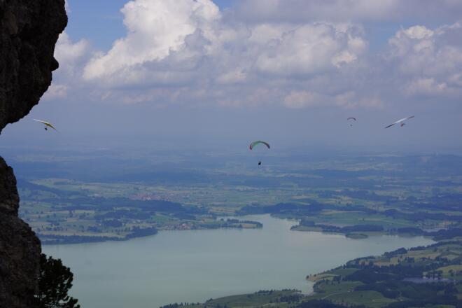 Wer nicht allzu viel Zeit mitbringt oder nur ein kurzes Stück ab der Bergstation Tegelbergbahn wandern möchte, ist hier genau richtig. Nachdem Sie mit der Kabinenbahn auf den Tegelberg geschwebt sind, führt der Weg gen Osten hinauf in Richtung Branderschrofen, dem eigentlichen Gipfel des Tegelbergs. Nach etwa 5 Minuten erreichen Sie den ersten Aussichtspunkt, im Norden erkennen Sie am Horizont den Auerberg bei Stötten. Weiter geht's zur Aussichtskanzel, die nach Westen ausgerichtet ist und Ihnen einige Gipfelnamen der Tannheimer und Allgäuer Berge präsentiert. Ab hier sind es noch ein paar Minuten zur Branderschrofenschulter, von der Ihnen der 360-Grad-Blick ein bleibendes Erlebnis beschert. Mit zwei Viscope-Fernrohren können Sie die umliegenden Berge genauer unter die Lupe nehmen. Anschließend wandern Sie über den 2014 neu angelegten Weg, der etwas oberhalb der Branderschrofenschulter nach links abzweigt, zurück zu Bergstation. Oder Sie machen sich zu Fuß auf in Richtung Tal.