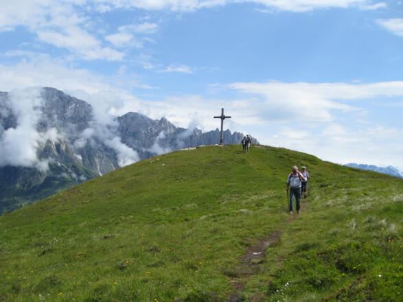Die SPORTLICHE Variante: Der sportliche Wanderer nimmt den schmalen Pfad vom Skizentrum bis zum Almhäusl und wandert den Dorfpanoramaweg (Nr. 53a) entlang. Sie passieren einen Wasserfall (Achtung Rutschgefahr) und kommen zur alten Linde und der Ruheoase bei der Pfarrkirche Dienten. Hier wählen Sie den Weg Nr. 440, welcher in den Weg Nr. 53b zur Kräuteralm Grüneggalm führt. Ein steilerer Anstieg folgt (Weg Nr. 12) und Sie stoßen bei der Sommereralm auf den Weg Nr. 440. Von hier aus folgen Sie dem Weg wie oben beschrieben bis zum Hundstein. Nach der Rast beim Statzerhaus folgen Sie dem Weg Nr. 446 über einen flachen Kamm zum Schönwieskopf. Den Schwalbenwandgipfel erreichen nach einem leichten Anstieg. Hier genießen Sie nochmals das herrliche Panorama bevor Sie über einen Fußsteig zum Hofer Plattl und weiter nach Maria Alm zum Berggasthof Hinterreith über einen steilen Waldweg absteigen. Folgen Sie dem Weg 27c ins Ortszentrum.