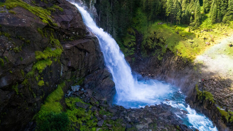 Am Fuße der Krimmler Wasserfälle erfrischt der feine Sprühnebel und sorgt für tolle Bilder zum Erinnern an den schönen Ausflug.