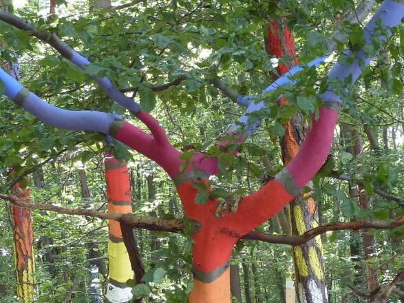 Die beiden Künstlerinnen Elke Stadlmayr und Karin Bergdolt wollten mit dem Projekt Kunstwald einen Verbindung von Natur und Kunst schaffen und für den Besucher eine neue Erfahrung im Erleben von Natur bieten. Das Geheimnisvolle und Elementare des Waldes soll unterstrichen werden und einzelne Bäume und Baumgruppen durch Farben und Formen in ihrer Eigenheit betont werden. Für den Besucher ergibt sich dadurch ein völlig neues Raumerlebnis, das sich im Lichtspiel der Tages- und Jahreszeiten reizvoll verändert.