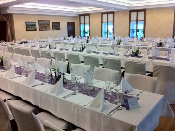 Neu renovierter Festsaal mit Tanzfläche und Konzertflügel mit 400 Sitzplätze, schattiger Gastgarten sowie Seminarraum mit Beamer mit Großbildleinwand.
