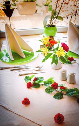 Genießen Sie Ihr Frühstück und Abendessen im Hotelrestaurant mit Blick auf den See oder je nach Saison und Wetter auf der Seeterrasse. Als Gast unseres Hauses stehen Ihnen folgende Einrichtungen kostenlos zur Verfügung: Schützenstube mit Kachelofen, großer Hotelparkplatz, Nutzung unseres Wohlfühlbereiches ( Sauna, Infrarotkabine, 2 Einzelwhirlwannen, 2 Wasserbetten ) heuer nur auf Vorbestellung möglich exklusiv pro Zimmer bis 1 Stunde am Tag -- Fitnessraum, Nordic Walking und Wanderstöcke, Rucksäcke , - Kosemtikbereich: " D´AUFBREZLEREI " Heuer Neu 1 x pro Woche ENTSPANNUNGSYOGA mit Daniela am See