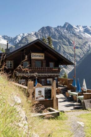 An der Edelweißhütte angekommen können wir über den breiten Forstweg weiter zur Leiterbergalm wandern.