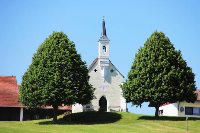 Auf einer Anhöhe über dem Markt Kößlarn, der sogenannten Leithen, steht eingefasst von zwei Linden ein kleine Kapelle. Sie bezeichnet jenem Ort, an dem die von Norden herbeiwandernden Pilger erstmals das Ziel ihrer Reise erblickten: die Wallfahrtskirche im Talkessel. Schon vor der Errichtung der jetzigen Kapelle im 19. Jahrhundert befanden sich an dieser Stelle ein Bild- und ein Opferstock. Hier sammelten sich größere Wallfahrtsgruppen, um anschließend das letzte Stück gemeinsam zu gehen. Der Weg, den sie dabei nahmen, ist als Kreuzweg mit vierzehn Stationen erhalten.