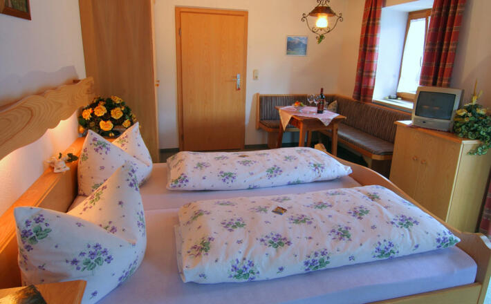 Unser Bauernhof liegt umgeben von der Ramsauer Bergwelt in sonniger Höhe. Freundlich, eingerichtete Zimmer, Gästekühlschrank. 2 Appartements für jeweils 2 - 4 Personen ab 30 €.