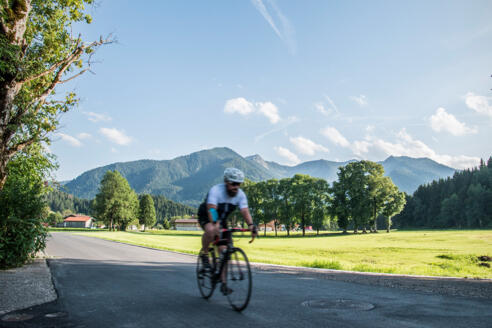 Dabei taucht auch ein kleines Schotterstück bei Sonnenholz auf, jedoch nur kurz und gut zu fahren. Im Anschluss folgen zwei Abschnitte mit etwas mehr Verkehr, die sich aber leider nicht vermeiden lassen: 2 km auf der B307 Richtung Schliersee und dann von Hausham Richtung Tegernsee 4 km leicht bergauf. Wer weiter im Trainingsmodus bleiben will, kann hier ein Zeitfahren machen.
