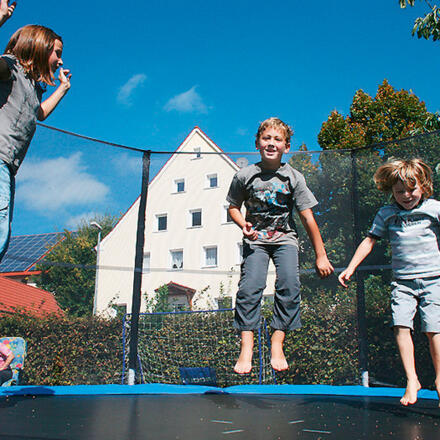 Aufenthaltsraum, Tischtennis, Kinderspielplatz, Riesentrampolin, Kinderspielhaus mit Kicker und Billard.