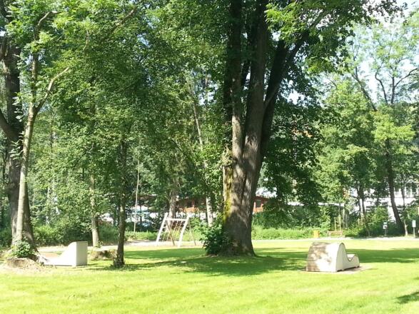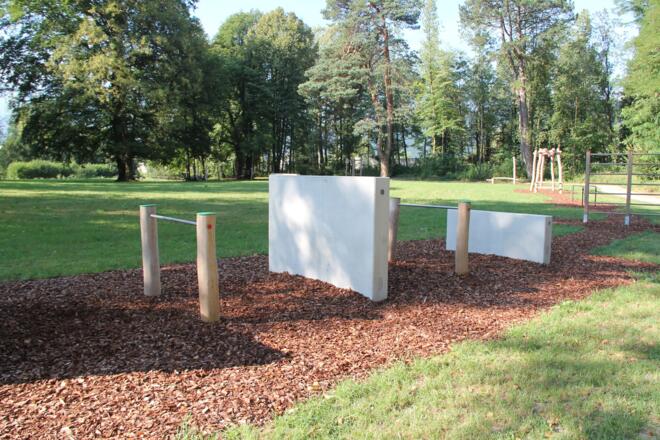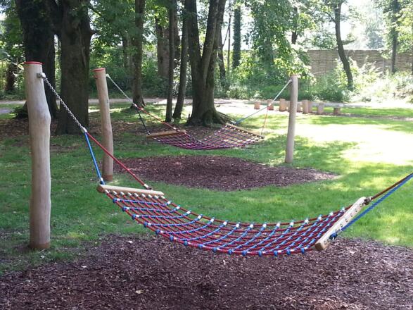 Ein leichter Spazierweg führt als einfacher Rundkurs durch den Park. Zusätzlich laden Hängematten, Sitzbänke und Turngeräte unter den alten Bäumen zum Ausrasten oder Auspowern ein.