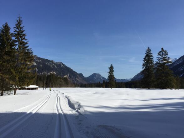 Eine schöne Loipe im Naturpark der Ammergauer Alpen von Graswang nach Linderhof