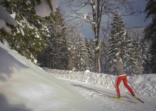 Die 4,9 km lange Loipe ist skating und klassisch gespurt.