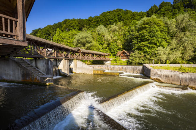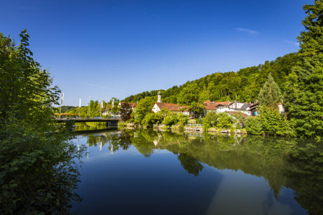Ein Spaziergang entlang der Loisach und durch die Flößerstadt Wolfratshausen. Der Loisachweg führt innenstadtnah zu den Spuren der Flößer, dem Kastenmühlwehr und der Floßlände.