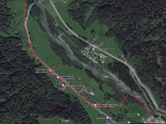 St. Gallenkirch-Galgenul - Illweg rechts und links von der gedeckten Holzbrücke Montafonerhüsli bis Silvretta-Montafon Bauhof bzw. Einfahrt Galgenulerstraße