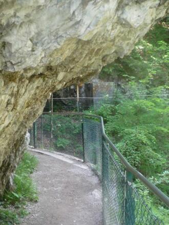 Nach dem ersten ebenen Stück am Gießenbach entlang beginnt der treppenartige Zustieg zur Klamm und ist daher für Kinderwagen nicht geeignet. Oben führt der Weg an Felswänden entlang und unter überhängendem Gestein hindurch durch die enge Schlucht. Der Weg, der vor 100 Jahren für den Wasserkraftwerksbau angelegt wurde, ist gut gesichert und kann mit dem richtigen Schuhwerk gefahrlos auch von Kindern begangen werden.