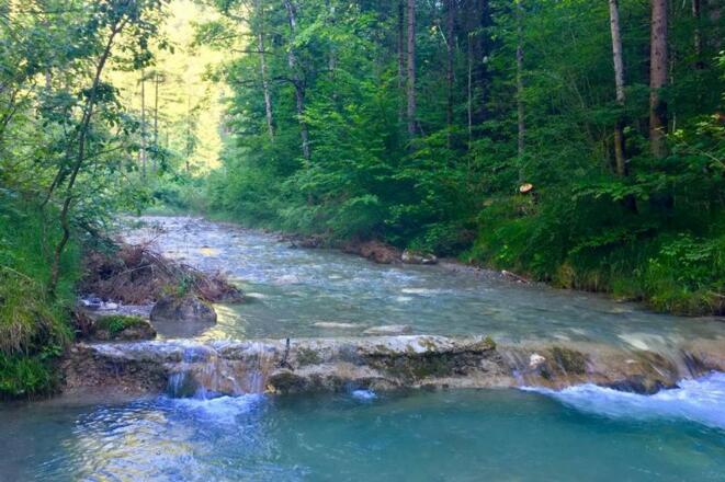 Danach geht es über schattige Wiesen und entlang Kiesbänken, die zum Spielen einladen, zur bewirtschafteten Schopperalm in etwa 15 Minuten (insg. ca. 7,5 km).