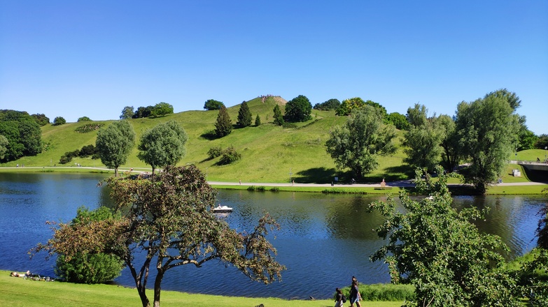 Weiter geht es hoch auf den Gipfel des Olympiaberges. Von hier hat man an sonnigen Tagen eine Aussicht über ganz München bis zu den Alpen. Der Berg ist der höchste frei gelegene Punkt in München und lädt dazu ein zu verweilen. Seit den olympischen Spielen 1972 finden am Berg regelmäßig Wintersportevents statt.