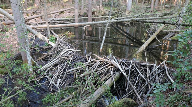 Vom Parkplatz oder dem Waldbahn-Haltepunkt Ludwigsthal kommend steuern wir in Richtung Haus zur Wildnis. An der Bahnunterführung vorbei gelangen wir bergauf an eine Kreuzung. Wir wenden uns wieder nach links auf den Nationalpark-Radweg Richtung Zwieslerwaldhaus. Gemütlich leicht bergab radelnd stoßen wir auf die Straße nach Zwieslerwaldhaus, die wir überqueren. Vom gegenüberliegenden Parkplatz aus führt uns nun die Radweg-Markierung Nummer ,2' am Schmalzbach entlang bis zum Schwellhäusl. Unterwegs können wir immer wieder Nagespuren an Stämmen und Ästen entdecken. Unter der Terrasse des Schwellhäusls finden wir die Biberburg, das Zuhause der großen Nagetiere.