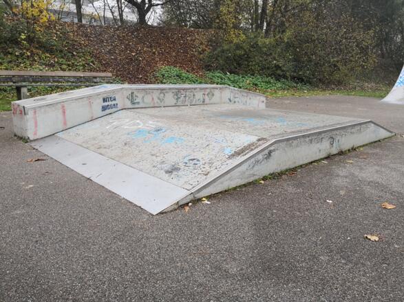 Dieser Street-Skatepark hat eine Fläche von 280 qm. Er verfügt über eine Bank, mit der man genug Schwung aufnehmen kann, um alle Obstacles gut zu befahren. Auch für Bike und Scooter Freunde gut geeignet.
