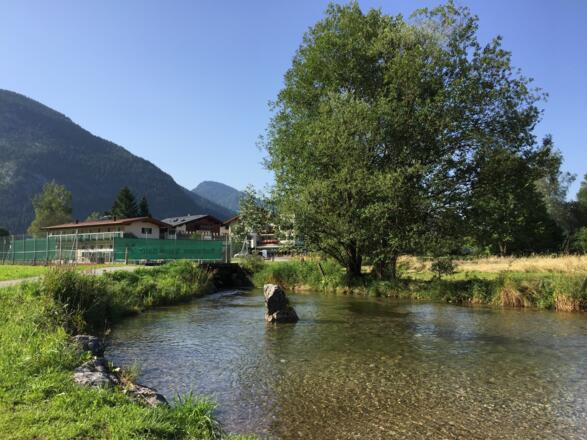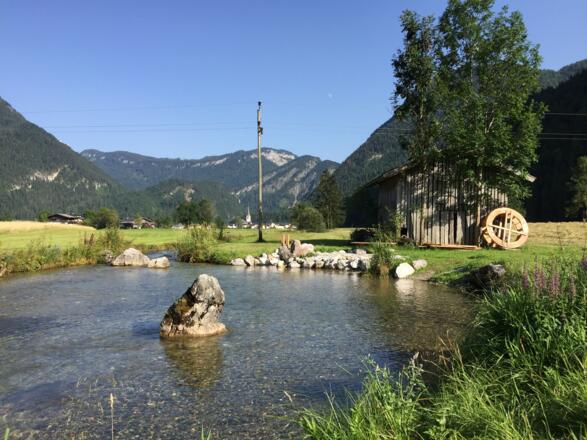 Logenplatz mit Wasserrad - ein sonniger Spielplatz für die Kinder.