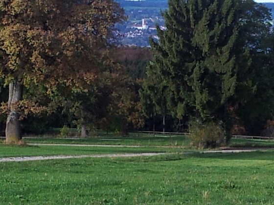 Für alle Anderen geht es nach der Abfahrt über die Andechser Straße zur Staatsstraße nach Herrsching und auf dieser nach rechts und ca. 600m bergan bis zu einem Sattel, in dem die Straße Richtung Fischen nach links abzweigt. Auf dieser Straße nach ca. 200m links auf einen Parkplatz einbiegen und dann auf Schotterwegen auf dem Rücken der Moräne zunächst bergan weiter nach Süden und später wieder bergab Richtung Kerschlach mit schöner Aussicht auf den Ammersee. Dabei an einer Weggabelung ca. 1km nach der höchsten Erhebung in einer leichten Senke im Wald den linken Weg Richtung Kerschlach nehmen (Holzschild am Baum).