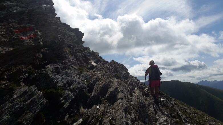 Zuerst führt die Forststraße bis zur Sticklerhütte. Von dort aus folgen sie den Steig bis auf die Riedingscharte, wo der Wanderweg am Kamm entlang aufs Weißeck führt. Trittsicherheit und Schwindelfreiheit ist erforderlich.