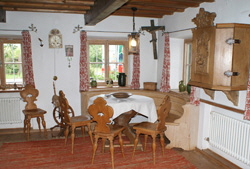Die Galerieräume sind in einen Nebengebäude, einem echten, alten Chiemgauer Holzstadl, untergebracht.