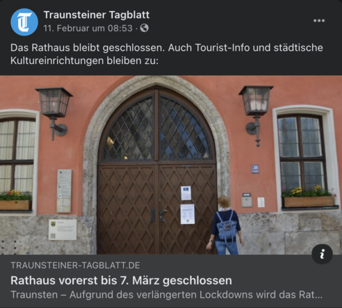 Über unsere Partner Traunsteiner Tagblatt, Südostnews.de erhalten Sie Neuigkeiten rund um die Stadt Traunstein und können die Berichte auf deren Newsportalen weiter lesen.
