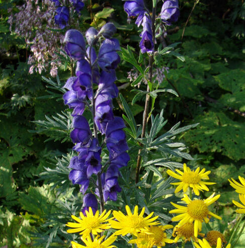 In solch einem Karrenfeld bildet sich normalerweise kaum eine Bodenauflage und nachdem das meiste Wasser durch die senkrechten Klüfte schnell nach unten abgeführt wird, ist es oft auch recht trocken. Die Schratten auf dem Besler sind jedoch immer wieder mit feiner Erde aufgefüllt und können deshalb das Regenwasser länger speichern. Dort wachsen dann verhältnismäßig anspruchsvolle Pflanzen, wie der Blaue Eisenhut. Bei ihm ist übrigens Vorsicht angesagt, denn er gilt als die giftigste Pflanze Europas. Ihm kann man im Spätsommer auch beim Abstieg zur Schönberg-Alpe begegnen. Mit etwas Glück begegnet man dort im Sommer auch einem absoluten Bergspezialisten unter den Tieren, der Gämse.