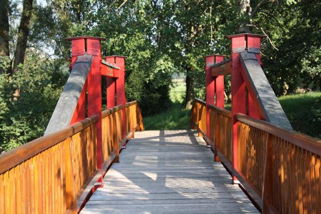 Der Wanderweg führt am Bach entlang, über sanfte Abhänge sowie vorbei an Moorflächen. Mehr als 100 heimische und fremdländische Baumarten, eine ausgefallene Holzbrücke sowie ein Kinderspielplatz machen das Wandern mit der Familie zu einem erlebnisreichen Ausflug.