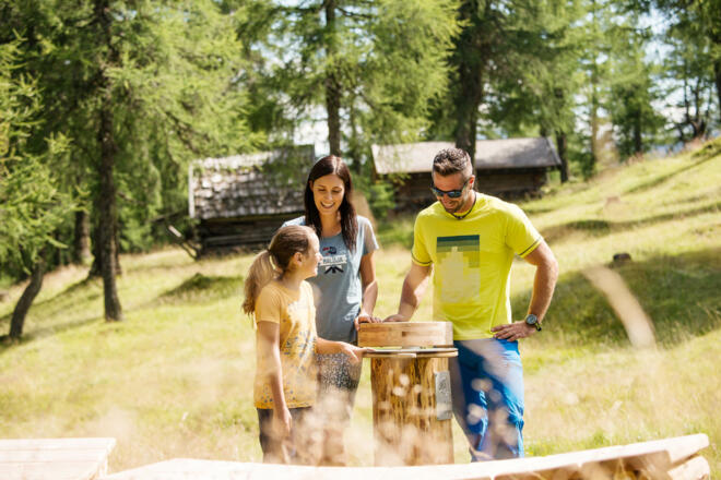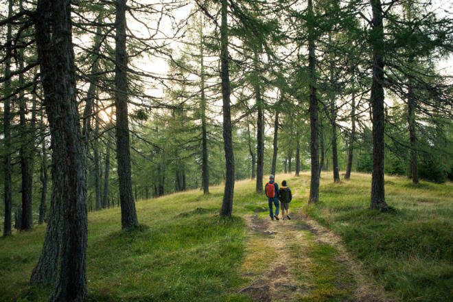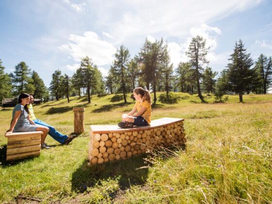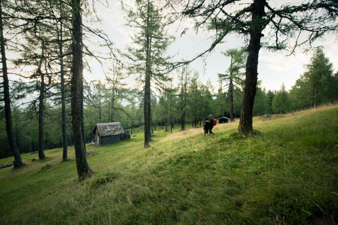 Sie spenden Schatten, lassen aber noch genug Licht hindurch für den Unterwuchs. Die Lärchen auf den Eulenwiesen ermöglichen eine geschützte Blumenvielfalt (Küchenschelle, blauer Enzian, Arnika, …) und geben Bürstlingsrasen und Zwergsträuchern Platz. Entstanden sind diese „Larchbergmahder“ durch Brandrodung. Die Bauern brauchten aufgrund der vielen Überschwemmungen im Talboden neue Weideflächen und suchten diese auf knapp 1.700 Metern Seehöhe. Während Fichten und Kiefern dabei verbrannten, loderten die Lärchen nur äußerlich und trieben im nächsten Frühjahr wieder aus. Erhalten bleiben solche Naturschauplätze nur durch aufwendige Pflege und Bewirtschaftung der Bauern. Einmal im Jahr werden die Eulenwiesen daher mit Handmäher und Sense gemäht.
