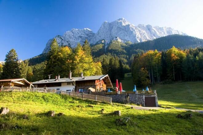 unsere Alm befindet sich oberhalb von Grainau auf 910 m Höhe und ist gut zu Fuß in ca. 20 min. zu erreichen. Sie liegt am Fuße des Waxensteins im wunderschönen Werdenfelser Land. Unser Team ist gerne für Sie da und freut sich auf einen Besuch von Ihnen. (Warme Küche bis 14.00 Uhr)