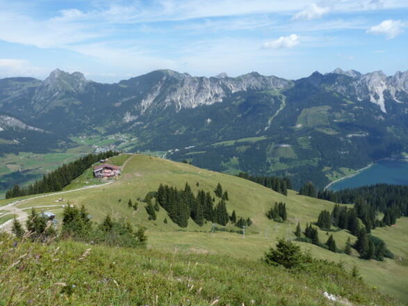 Einfache Wanderung am Forstweg bis zum Gipfel - Gondefahrt ins Tal.